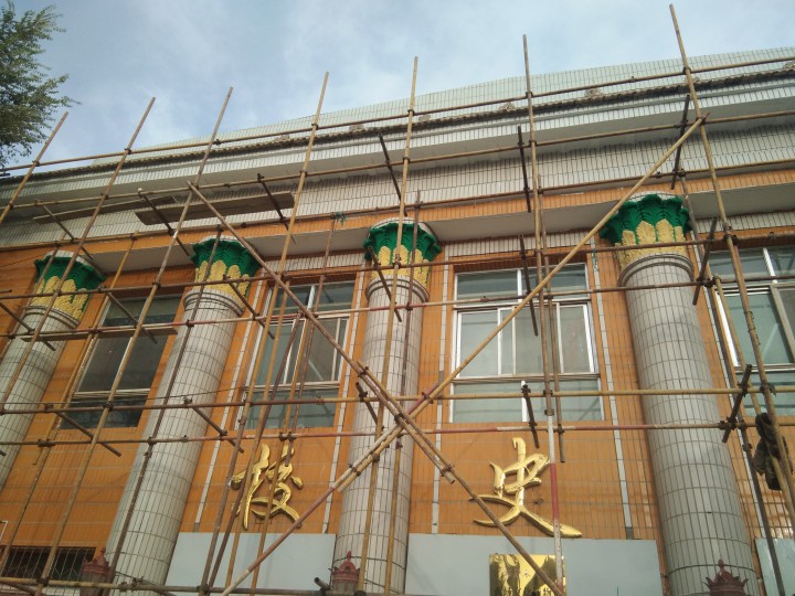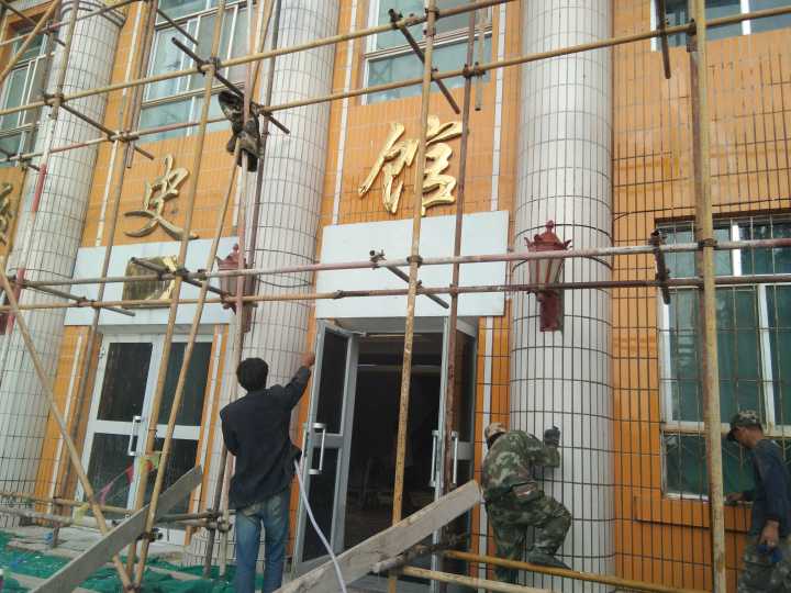 塔里木大學(xué)校史館建筑群保護(hù)修繕工程校史館位于新疆阿拉爾市塔里木大學(xué)路東150m處,約建于1962年。建筑平面呈矩形,南、北朝向,軸線長度為 90.8m,寬度為20.4m。占地面積1558.16㎡,建筑面積3115.12㎡。建筑為二層砌體結(jié)構(gòu),層高3.9m,總高10.5m。