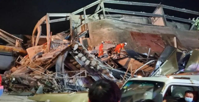 據(jù)知情人士透露,原結構是4層鋼結構房屋,高度22米,后來中間加了3個夾層,縱向跨度有6個8米,橫向有14米、7米跨,且在三層樓面14米跨中間梁上立柱。14米跨的邊柱先失穩(wěn),三四分鐘后,樓體整體坍塌?,F(xiàn)場基本上梁變豎向、柱變水平。